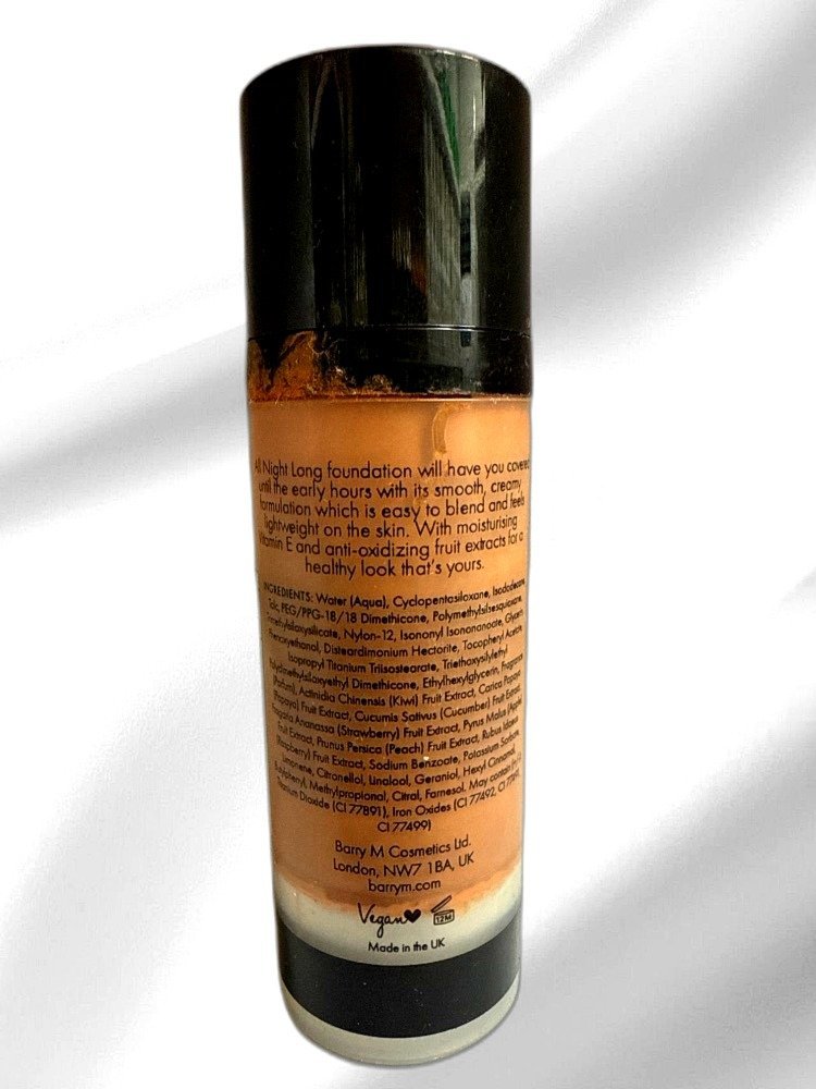 Embrace confidence with every application as this foundation works tirelessly to keep shine at bay and enhance your natural beauty. Enjoy the ease of a perfect complexion with All Night Long Full Coverage Foundation—your secret weapon for an impeccable look, every time.
