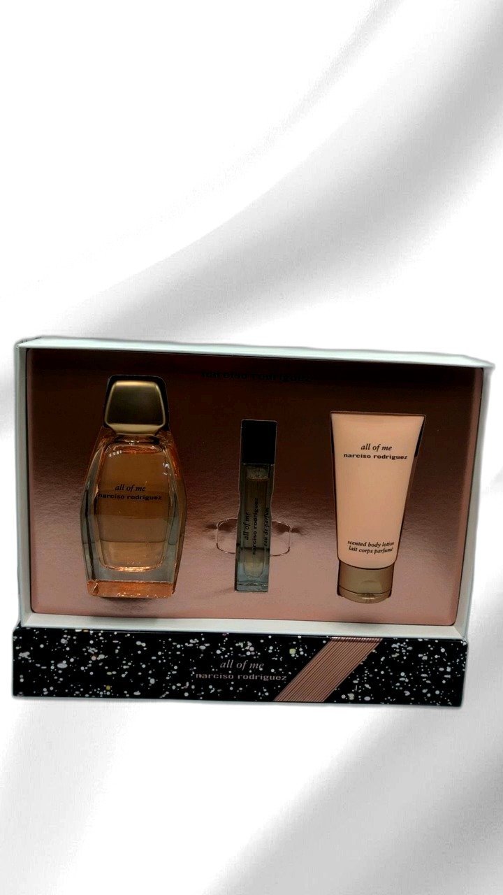 Experience the Narciso Rodriguez All of Me Eau de Parfum Set, a perfect collection for women who appreciate elegance and sophistication. The set includes a generous 90ml Eau de Parfum for an everyday fragrance experience, complemented by a 10ml travel-friendly purse spray, ideal for on-the-go touch-ups. To complete the package, enjoy the 50ml scented body lotion, designed to hydrate the skin while enveloping you in the subtle notes of this exquisite scent. Packaged in a beautifully designed transparent and pink box, this set makes for a luxurious gift or a delightful addition to your personal collection. The blend of scent and style reflects the modern femininity and timeless quality of the Narciso Rodriguez brand.