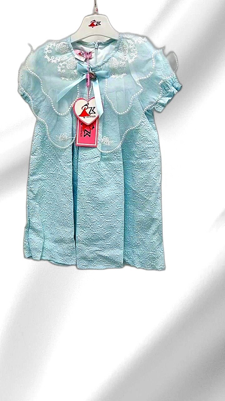 This charming light blue lace dress is perfect for little girls. It features delicate lace embroidery over a soft fabric, offering elegance and comfort. Ideal for special occasions and casual outings, it’s designed to make your child stand out gracefully. The dress comes in a soothing color, tailored for a 3-year-old, and embodies a gentle elegance that complements any setting. The intricate detailing on the dress makes it a stylish choice for young fashionistas, ensuring they look adorable while feeling comfortable.