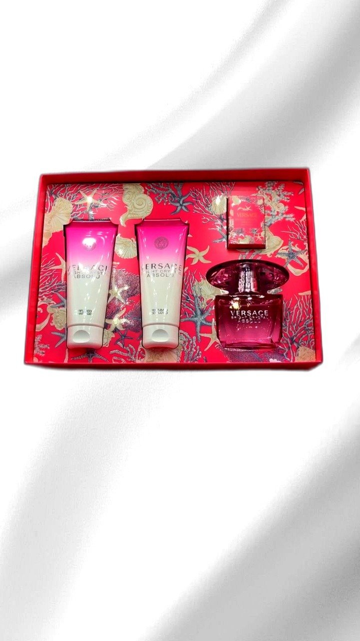 The Versace Bright Crystal Absolu Gift Set is an exquisite collection for women who appreciate luxurious fragrances. This set includes a 90ml eau de parfum spray, perfect for daily wear or special occasions. The alluring pink bottle reflects elegance and sophistication. Complementing the main perfume is a 5ml mini bottle, ideal for travel or on-the-go freshness. The set also features a 100ml perfumed shower gel and a 100ml body lotion, both enhancing the fragrance experience while nourishing the skin. Bright Crystal Absolu is a captivating scent with enhanced intensity, delivering an alluring aroma that lasts. This set makes an impeccable gift for loved ones or a luxurious treat for oneself, capturing the essence of femininity and grace.