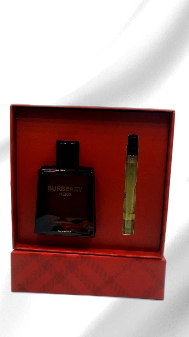 Experience the bold and magnetic fragrance of Burberry Hero Eau de Parfum. This set includes a 100ml bottle perfectly packaged with an additional 10ml travel spray for convenience. The design embodies a deep red and black aesthetic, capturing the essence of masculinity. Ideal for the modern man, the scent features timeless aromatic notes that evoke strength and vitality. Perfect for both day and night wear, this fragrance set makes a striking addition to any collection, offering both style and substance in one luxurious package.