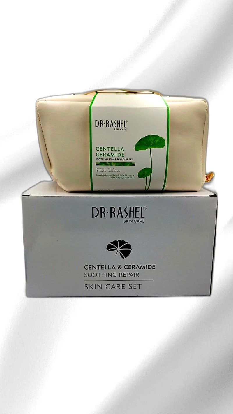 The DR. RASHEL Centella & Ceramide Soothing Repair Skin Care Set is designed to soothe and repair sensitive skin. Enriched with centella and ceramide, it strengthens the skin barrier and provides long-lasting hydration. The set includes five essential products to cleanse, tone, moisturize, and protect your skin, ensuring a healthy, radiant complexion. Suitable for all skin types, this kit offers a comprehensive routine to address specific skin concerns while enhancing overall skin health. Perfect for daily use, it promotes skin radiance and provides UV protection.