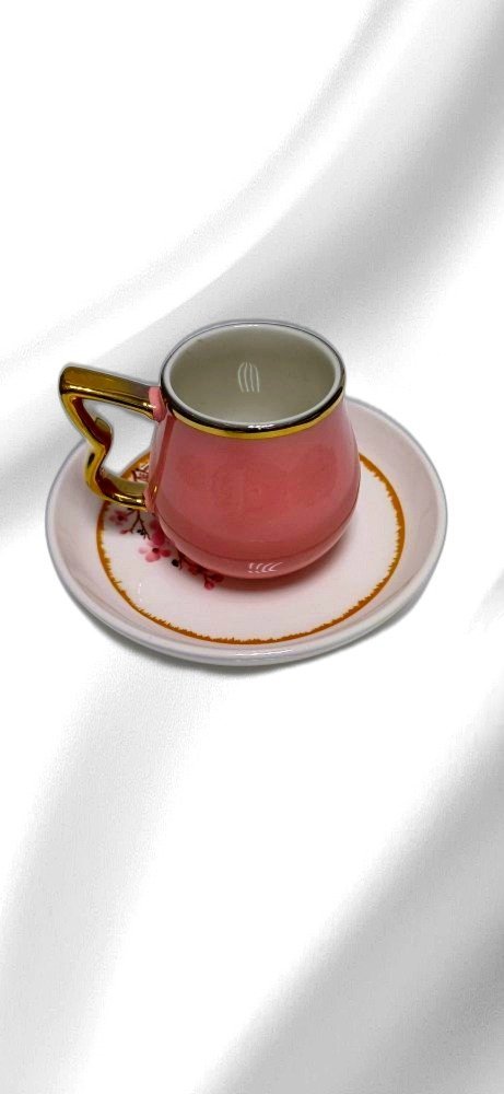 Elevate your coffee or tea experience with this exquisite pink ceramic cup and saucer set. The elegant design features a luxurious gold handle that adds a touch of sophistication to your daily routine. Crafted from high-quality ceramic, the cup is both durable and stylish, ensuring it lasts through countless mornings and gatherings. The matching saucer, adorned with delicate floral patterns, complements the cup beautifully, offering a cohesive look that will enhance any table setting. This set is perfect for both casual and formal occasions, making it a versatile addition to your kitchenware collection. Ideal as a thoughtful gift for coffee enthusiasts or as a charming addition to your own collection. Whether you’re savoring a quiet moment alone or serving guests, this cup and saucer set promises to deliver elegance and functionality in every sip.