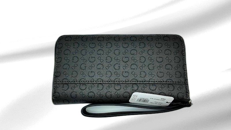 Introducing the GUESS EASLEY SLG wallet, a perfect blend of elegance and functionality. Crafted with a sophisticated monogram pattern, this wallet exudes timeless style. The sleek zip-around design ensures your essentials are securely stored while providing easy access. Inside, you’ll find ample space for cards, cash, and coins, making it an ideal companion for everyday use or special occasions. The wrist strap adds convenience, allowing you to carry it effortlessly on its own or within a larger bag. Whether you’re heading to a business meeting or a casual outing, this wallet complements any outfit with its refined look. Experience the perfect combination of luxury and practicality with the GUESS EASLEY SLG wallet, designed to meet the needs of the modern individual.