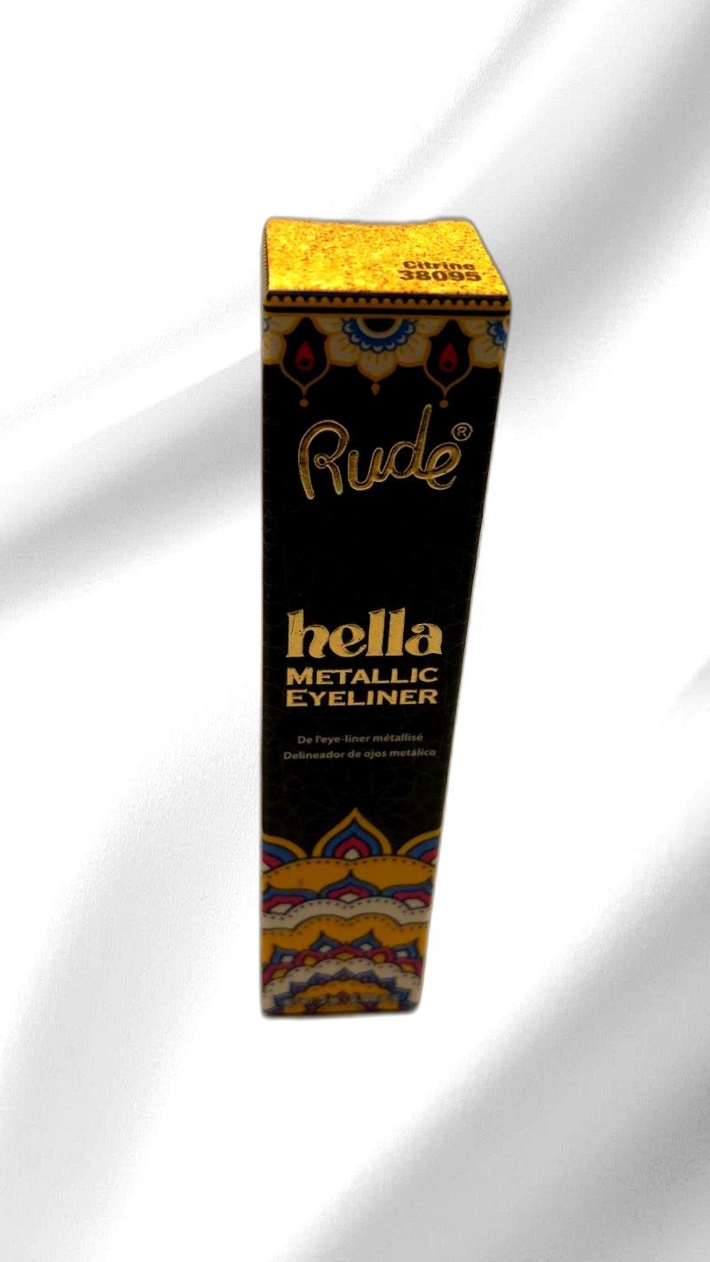 Elevate your eye makeup game with Rude’s hella METALLIC EYELINER. This striking eyeliner delivers intense metallic shine, perfect for creating bold, eye-catching looks. Its smooth, easy-glide formula ensures precise application, allowing you to effortlessly craft both thin, delicate lines and bold, dramatic strokes. Whether you’re going for a subtle shimmer or a full-on glam look, this eyeliner is your go-to for versatility and style. The long-lasting formula resists smudging and fading, keeping your eyes looking vibrant and fresh all day or night. Ideal for parties, special occasions, or just adding a pop of sparkle to your everyday routine, Rude’s hella METALLIC EYELINER is a must-have in your beauty arsenal. Unleash your creativity and let your eyes shine with this captivating metallic eyeliner.