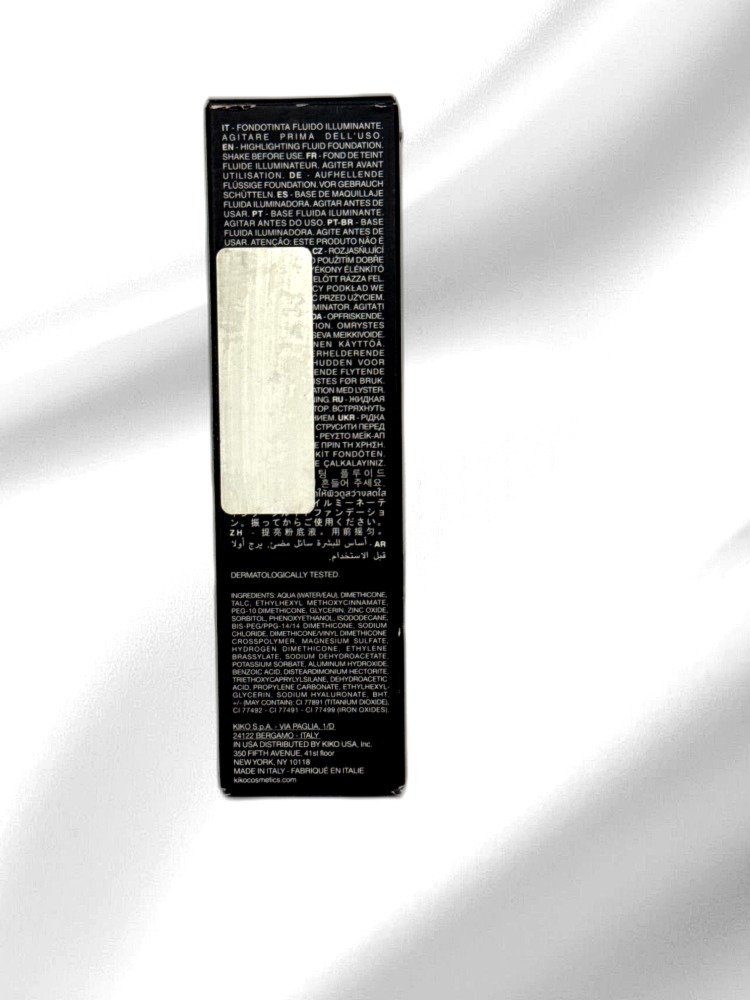 Discover the perfect canvas for your makeup with KIKO Milano’s Skin Tone Foundation. This luxurious foundation provides a seamless blend, enhancing your skin’s natural beauty while offering a lightweight feel. Specially formulated with SPF 15, it protects your skin from harmful UV rays, making it an ideal choice for everyday wear. The buildable coverage ensures a smooth, even application, helping to conceal imperfections without clogging pores. Its long-lasting formula allows you to maintain a radiant look from morning to night, ensuring confidence in every environment. Suitable for all skin types, the foundation comes in a variety of shades to perfectly match your unique skin tone. Whether you’re heading to the office or out for a night on the town, this foundation will leave your skin looking fresh, nourished, and effortlessly beautiful. Embrace a flawless finish with KIKO Milano – where quality meets style.