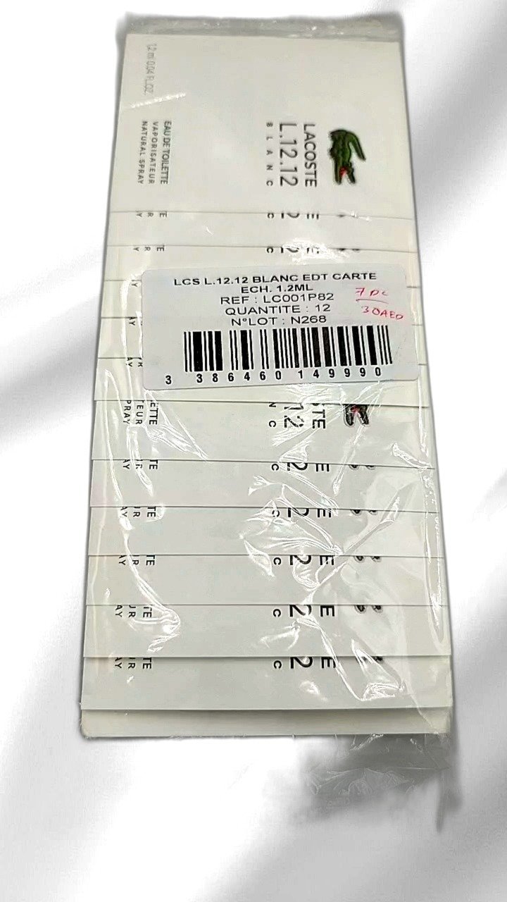Lacoste L.12.12 Blanc Eau de Toilette embodies the freshness and elegance of the iconic Lacoste brand. This 1.2ml sample size features a pure, clean scent perfect for everyday wear. It offers top notes of grapefruit mixed with rosemary and cardamom, followed by a heart of tuberose, ylang-ylang, and olibanum. Ideal for the modern man seeking a touch of classic charm, this fragrance radiates confidence and simplicity with its crisp white packaging. Perfect for travel or testing before committing to a full-size bottle, Lacoste L.12.12 Blanc is the essence of cool sophistication.