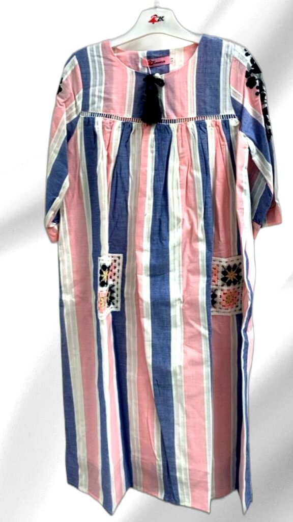 This charming beige dress for young girls features intricate lace trim along the neckline and sleeves, adding a touch of elegance and sophistication. Made from soft, breathable fabric, it ensures comfort throughout the day. The dress includes a back tie that offers a customizable fit, while the pleated skirt allows for easy movement. Ideal for parties, family gatherings, or any special occasion, this dress combines style and comfort seamlessly. Its neutral beige color makes it versatile for pairing with various accessories, ensuring your little one stands out with timeless fashion.
