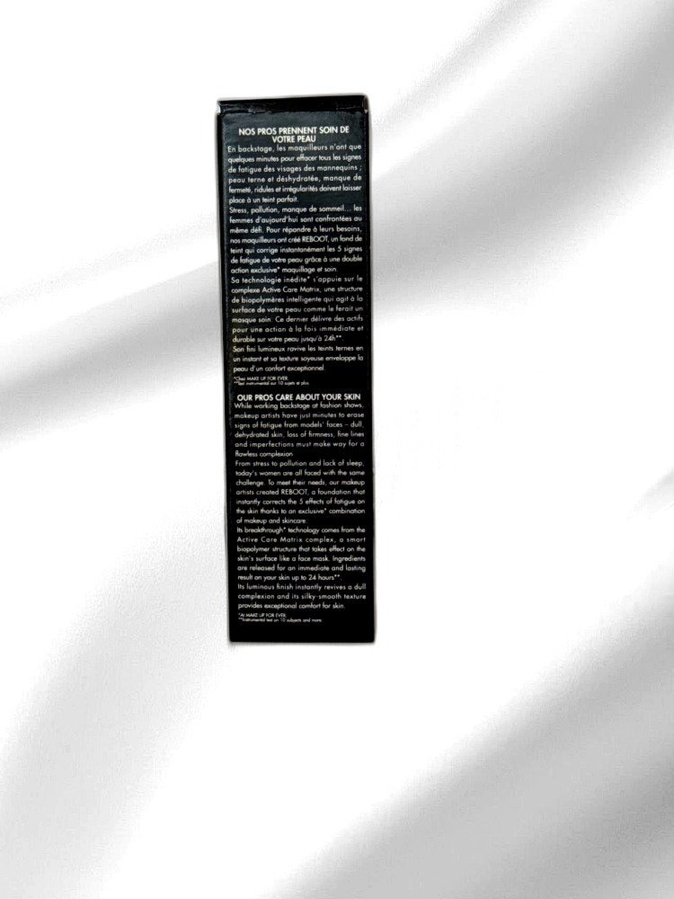 Discover the transformative power of MAKE UP FOR EVER’s REBOOT foundation, designed to rejuvenate and enhance your skin’s natural radiance. This innovative foundation combines the benefits of skincare and makeup to deliver a luminous finish that brightens, smoothes, and firms your complexion. Infused with nourishing ingredients, it provides hydration to keep your skin soft and supple all day long.