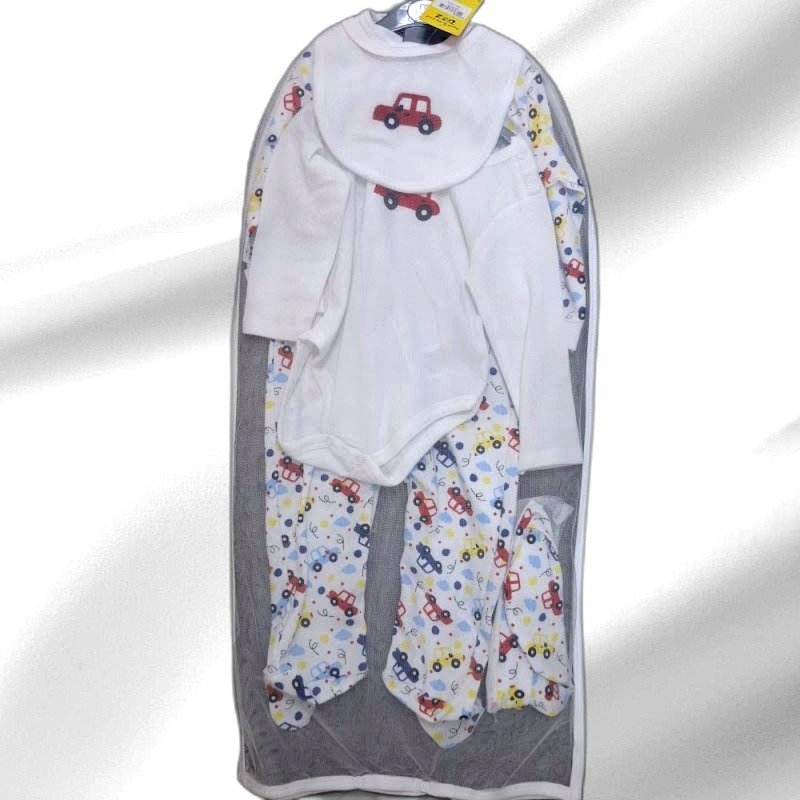 Wrap your little one in charm with our delightful baby clothing set, featuring an enchanting car-themed design. This set includes a soft, cozy bodysuit, comfortable pants, and a matching bib, all crafted from premium, breathable materials for maximum comfort. The vibrant, playful car prints add a touch of fun and whimsy, making it perfect for everyday wear or special outings. Designed with your baby’s comfort in mind, the onesie offers ease of dressing with secure snaps, while the pants provide a snug yet gentle fit. The absorbent bib keeps your baby clean during mealtimes, ensuring both style and practicality. This set is an ideal gift for baby showers or new parents, combining adorable design with functionality. Easy to care for and durable, it stands up to frequent washes, maintaining softness and color. Dress your baby in style with this charming, versatile outfit.