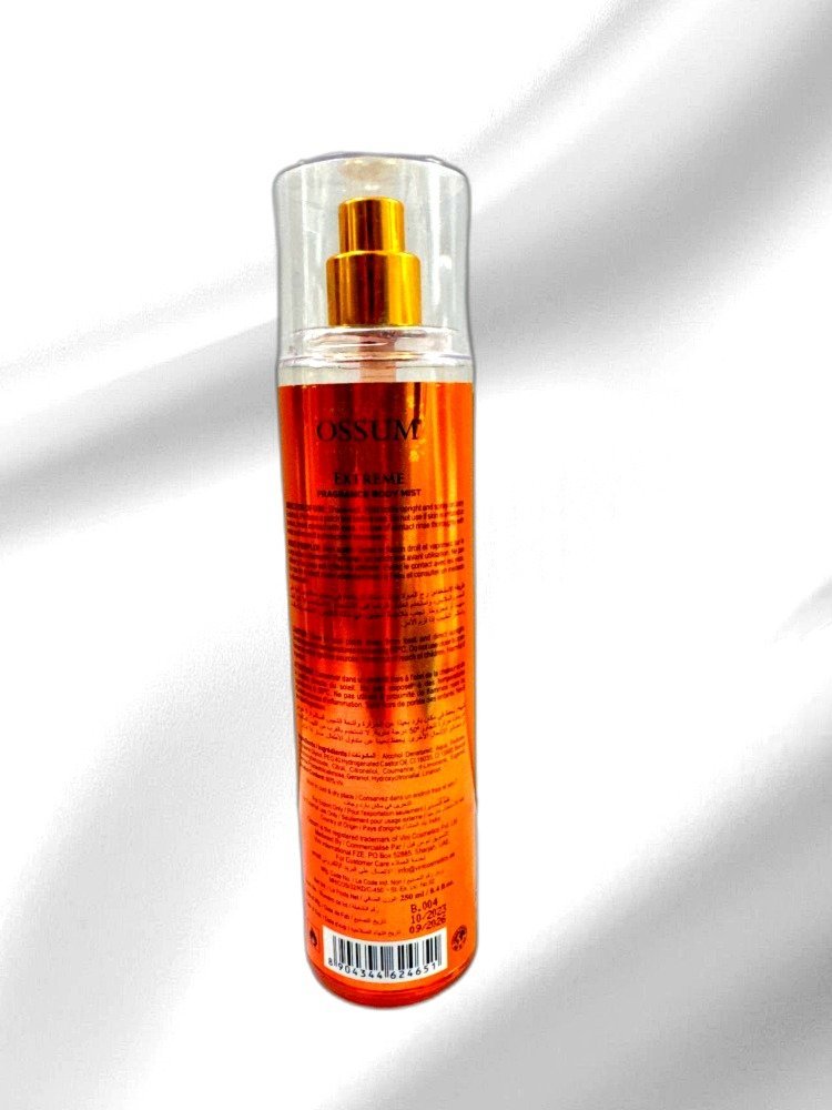 Perfect for both casual outings and special occasions, this body mist adds a touch of luxury and confidence to your persona. The convenient spray bottle design allows for easy application, making it ideal for on-the-go refreshment. Elevate your fragrance experience with Ossum Extreme, a treat for the senses that turns every moment into a fragrant celebration. Whether you’re looking to enhance your everyday ensemble or searching for the perfect gift, Ossum Extreme Fragrance Body Mist is a versatile and cherished choice.