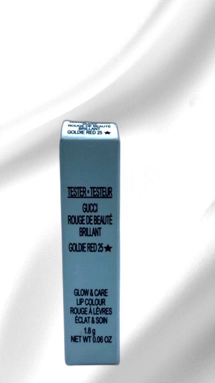 The Gucci Rouge De Beauté Brillant in Goldie Red 25 provides a radiant lip color with a nourishing glow and care formula. This lip color, weighing 1.8 g, ensures a striking look with lasting hydration and shine. Suitable for all individuals seeking a touch of elegance and glamour. Made in Italy, this luxurious product is perfect for highlighting your lips while providing essential care. Ideal for daily wear or special occasions, its vibrant Goldie Red 25 shade adds a bold yet refined touch to your look.