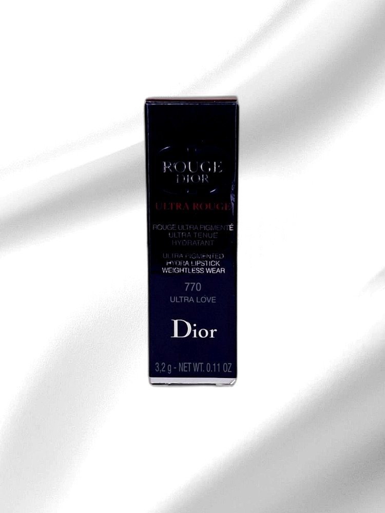 Discover the luxurious Rouge Dior Ultra Rouge lipstick, a beauty essential for those who seek both bold color and comfort. This ultra-pigmented lipstick has been meticulously crafted to deliver intense, luminous color while maintaining a light, hydrating feel on your lips. The shade “Ultra Love – 770” is a versatile yet striking hue, perfect for making a statement in any ensemble.