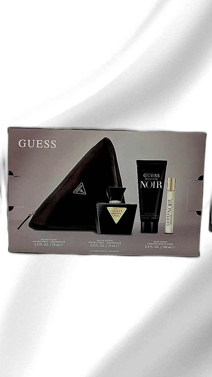 The Guess Seductive Noir Gift Set for Women combines elegance and allure, featuring a 2.5 FL OZ Eau de Toilette, a convenient 0.5 FL OZ travel-size Eau de Toilette, and a 3.4 FL OZ Body Lotion. Presented in a luxurious black and gold design, this set delivers a captivating fragrance experience for women. Ideal for special occasions or daily wear, the Seductive Noir scent captures timeless femininity and sophistication. The included body lotion enhances the fragrance profile while providing silky smooth skin. Perfect as a gift or a personal treat, this set is a versatile addition to any fragrance collection.