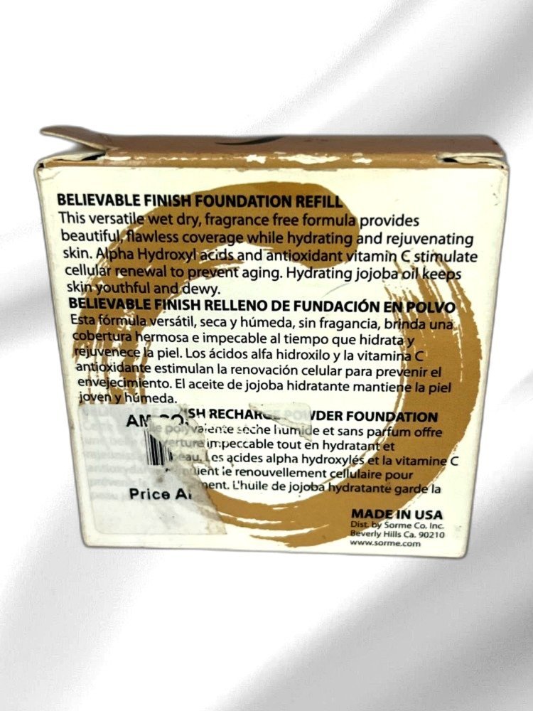 Discover the secret to a flawless complexion with Sormé’s Believable Finish Wet/Dry Powder Foundation. This versatile powder foundation seamlessly blends into your skin, providing a natural, believable finish that lasts all day. Whether you’re striving for a light daytime look or more polished evening glamour, this product has you covered. The unique formula allows for both wet and dry application, giving you the flexibility to build coverage as desired.