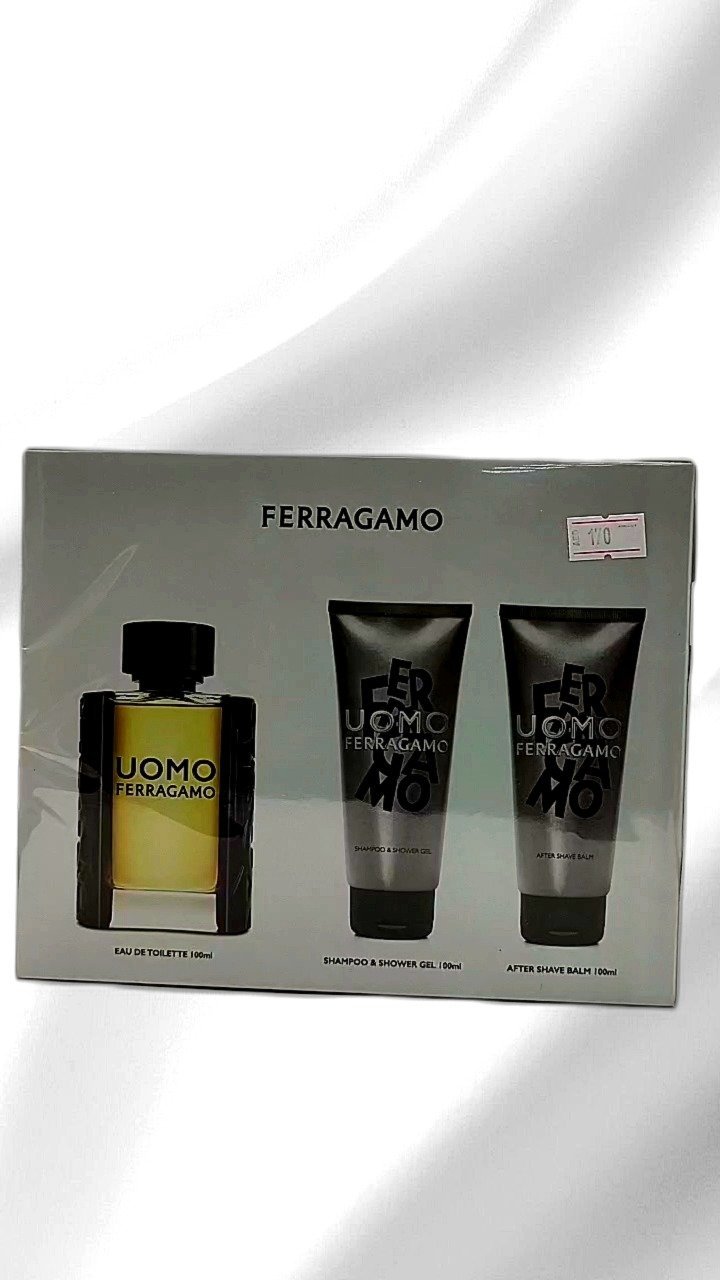 This sophisticated Uomo Ferragamo Eau de Toilette set includes a 100ml bottle of the signature fragrance along with an accompanying 100ml shampoo and shower gel, and a 100ml after shave balm. The scent embodies masculine elegance and refinement, ideal for any occasion. The packaging features a sleek black and silver design, reflecting the brand’s classic style. Perfect as a gift or a personal indulgence, this set offers a complete grooming experience infused with the captivating aroma of Uomo Ferragamo.