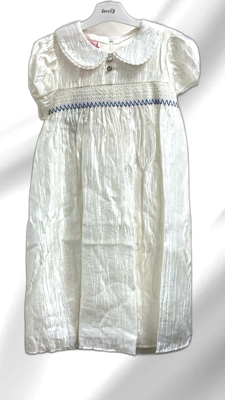 This beautiful white dress is perfect for any special occasion. Designed with a delicate lace collar and a charming bow at the back, it offers a classic and timeless look. The dress features subtle pleating and a comfortable fit, making it ideal for young girls seeking both style and comfort. Made from high-quality fabric, this dress is easy to maintain and perfect for parties, weddings, or any formal event. The simple yet elegant design ensures it can be worn across seasons, offering versatility in your child’s wardrobe.